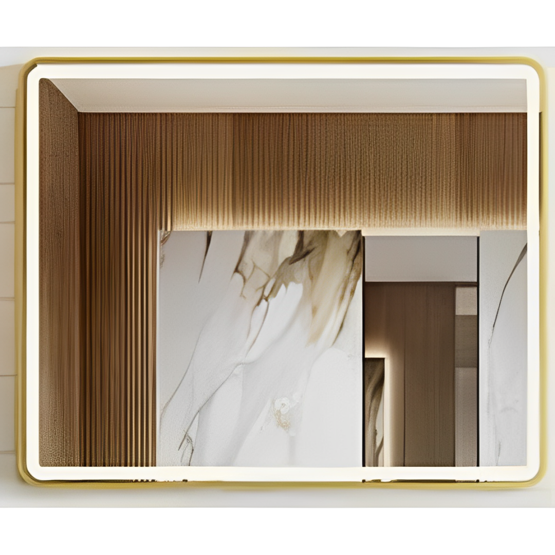 Gương phòng tắm LED hình chữ nhật, góc bo tròn.